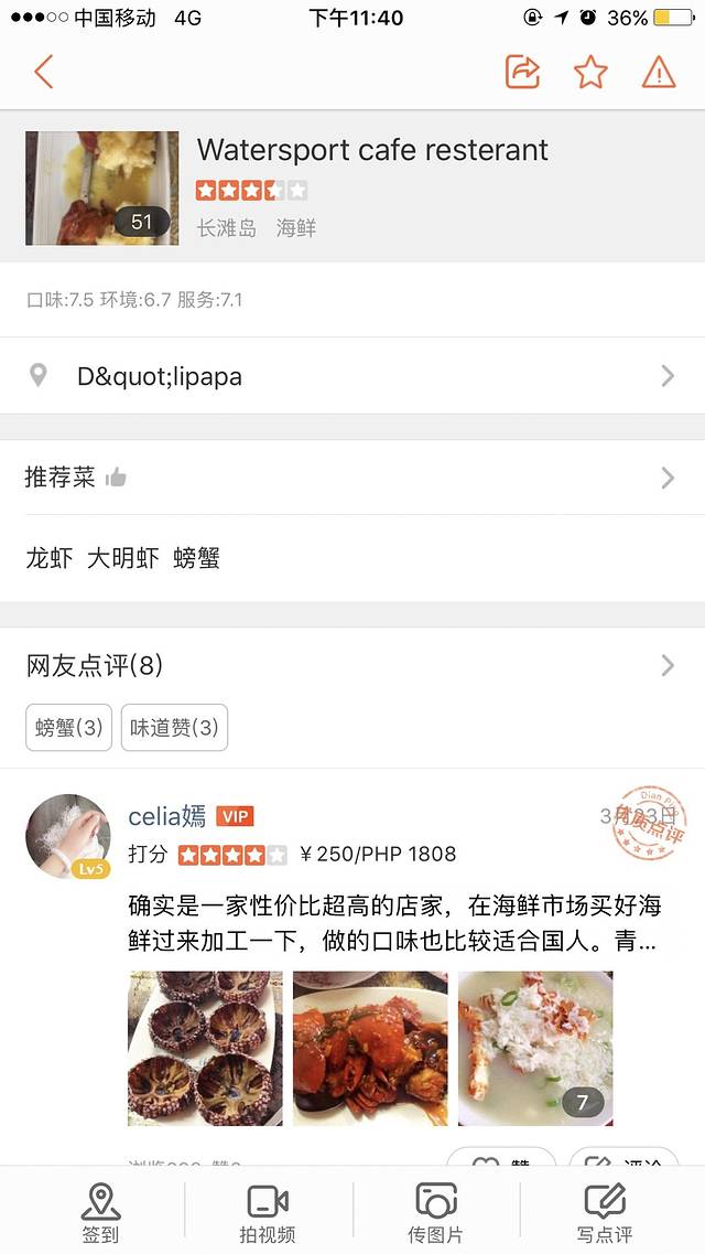 晚上来到talipapa吃海鲜。酒店可以叫突突车,一般100p,我尝试了讨价还价,但是没有讲下价格。