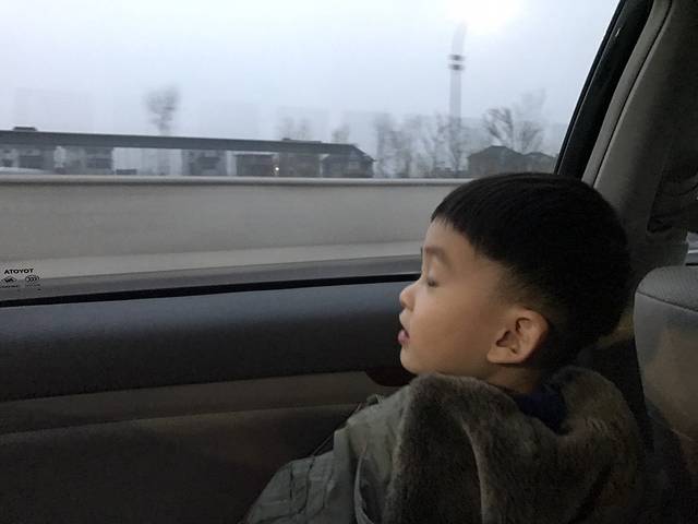 折腾到12点,这个磨人的小妖精终于睡着了。为了给他腾位子,我们两个只能挤在一个半位子里,也是很心酸啊。