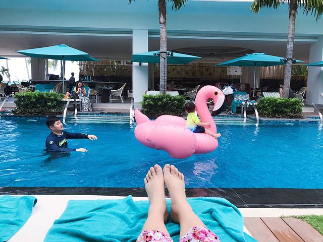 带孩子旅行就是这样,必须要满足他的作息时间,所以大人也没得自由,只有泡泡酒店,游游泳。