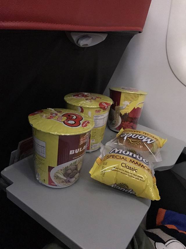 准时上了飞机,听说廉价航空都是没有飞机餐的,连喝水都要钱,不过事实证明亚航还算靠谱,有水有飞机餐,虽然是泡面…想起老公在出发前塞进行李箱的几桶泡面,感觉这就是一趟泡面之旅…