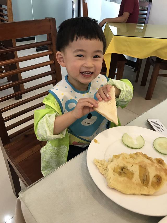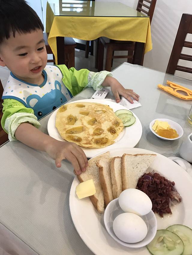 一觉醒来,脱下冬装,换上轻盈的夏装,我们一起去吃了菲律宾的第一顿早餐。早餐很丰盛,店员看到我们带宝宝特地推荐了香蕉烙饼,很贴心。牛肉是五分熟,吃起来很嫩,一顿好吃的早餐,整个心情都好得飞起来了!