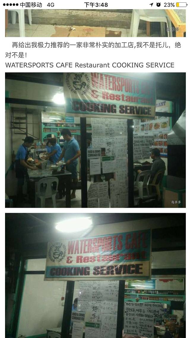 我们在加工店点了一瓶啤酒和一瓶雪碧,加了一个空心菜,最后连加工费一共收了1300p,算是岛上的良心价了。在这里要感谢大神分享的攻略,写得特别详细。
