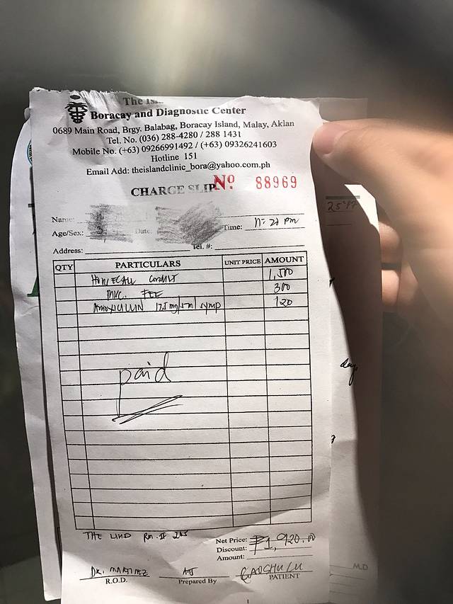 医生开了两张单子,付了1920p。还好买了平安的保险,回来可以报销。