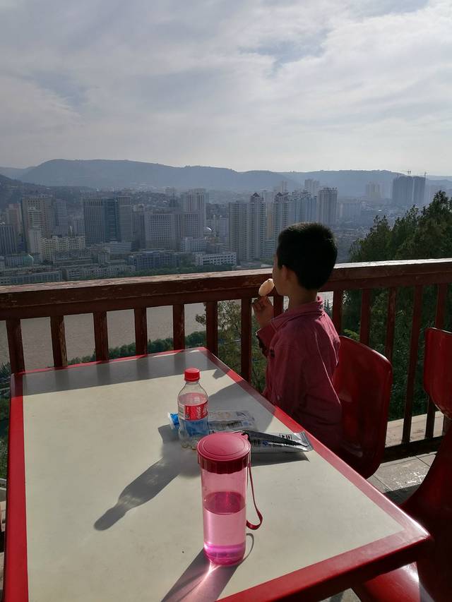 坐在山顶,吃着冷饮,看着山下的黄河和城市全貌,棒极了......