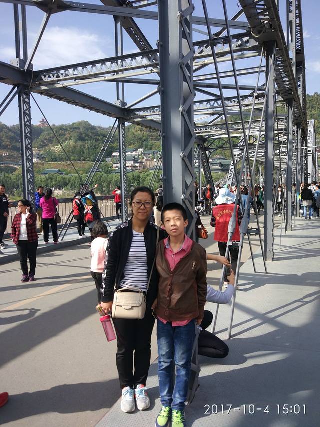 稍作休息,直奔黄河铁桥中山桥,先给娘俩来一张。人太多了......