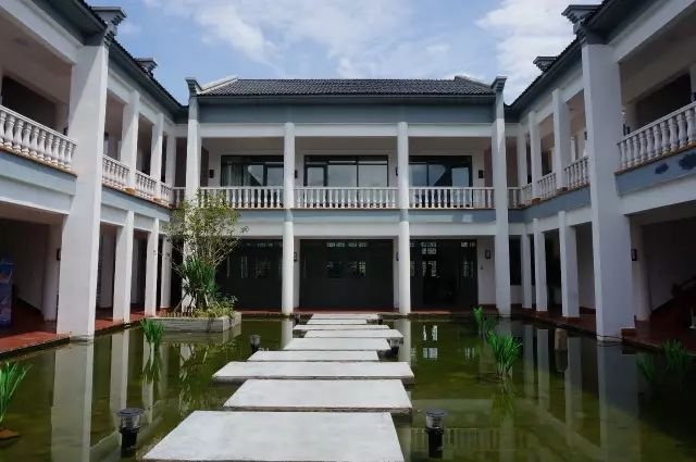 走进雲栖雅舍院落。看着水中的石板,起了童心,像小时候过小溪般蹦跶着过去。水是灵动的,很多建筑都会设计个水池,不论是装饰还是泳池,都在建筑中巧妙运用,枕水而居,向来是南方人筑宿的最高要求。借助映射与反射,将美景引入院中。