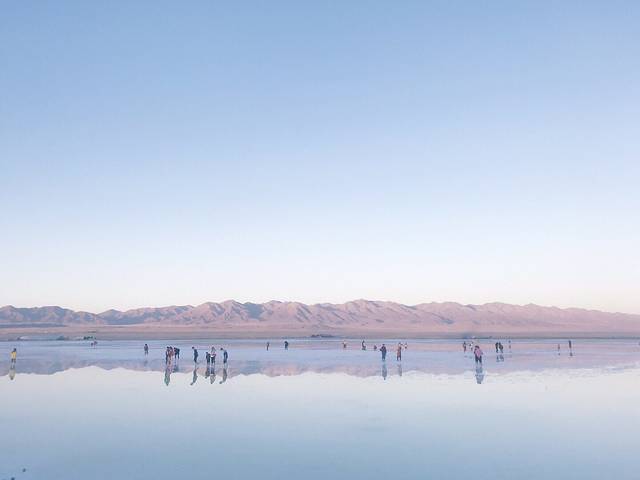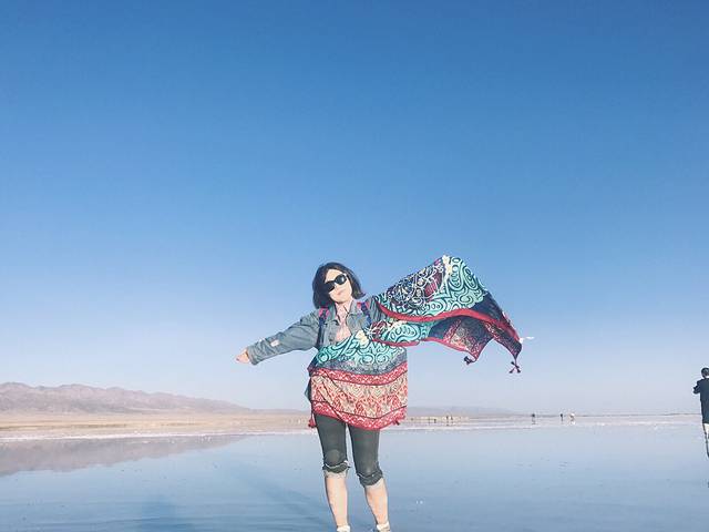 到了茶卡盐湖是一定要下湖去拍照的