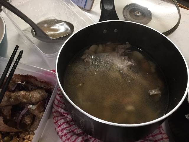 朋友做的鸡腿肉加香菇炖的鸡汤…