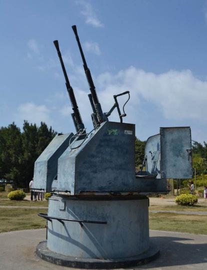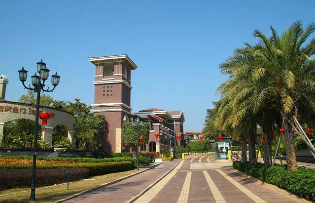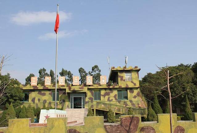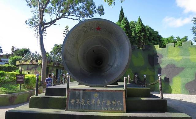 英雄三岛战地观光园,在1958年炮战时向金门射击炮弹几乎达五十万发,后来大陆改采单打双停的政策逐渐减少攻势直到停战,里面全是依照那时的建筑工事布局。我们没有进去,在门口拍了下照片。然后沿着阳塘路慢慢走,道路两旁的刺桐开得灿烂,向北方向走了约30分钟后到达大嶝东路13号的大嶝对台小额商品交易市场,在那里可以买到好多台湾的好东西,最有名的是金门贡糖和金门菜刀。金门菜刀非常锋利,但是要识货,要不然很容易买到大陆生产的产品,而且要会懂得砍价,通常能砍到一半以上的价格。