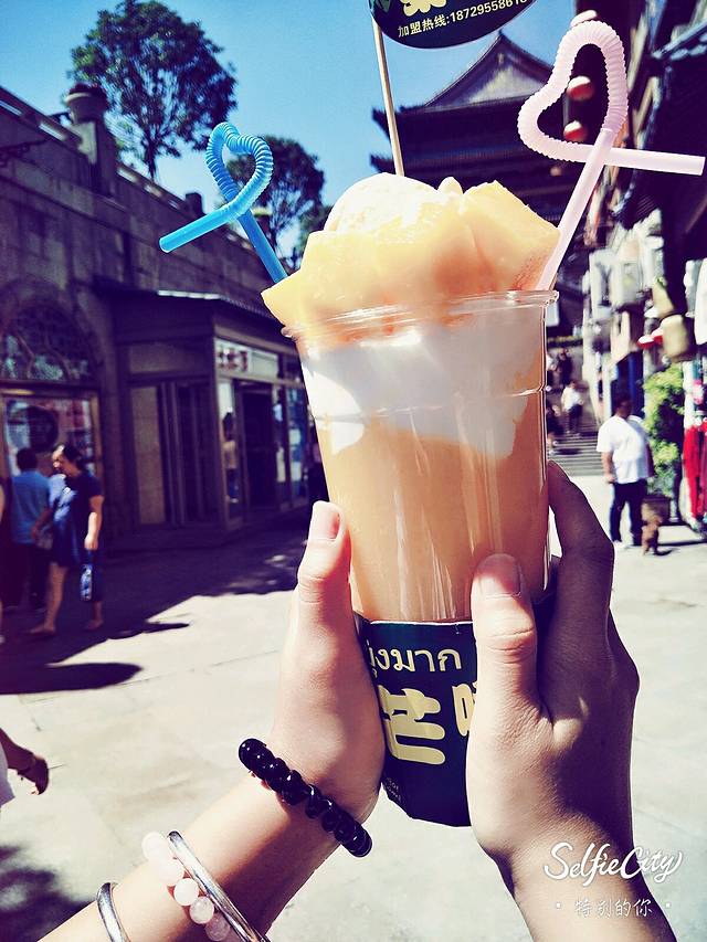 回民街入口有一家泰芒,建议可以买一杯!可以不要芒果口味,比如草莓也可以!因为芒果味到处都有,但是草莓或者其他口味,别的地方不一定吃的到