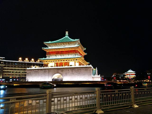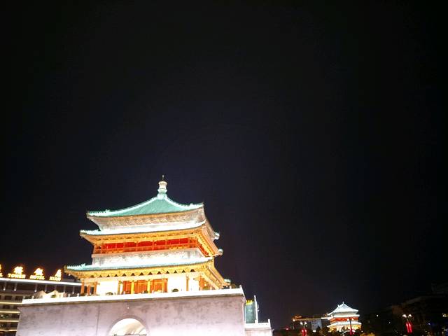 晚上我们去看了钟楼,亮灯的钟楼还是蛮漂亮的!附近很热闹,因为回民街就在附近!