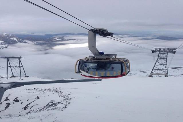 在韩昊男的带领下,我们从苏黎世乘车到英格堡,再坐三段缆车,全程只花了不到一个小时我们就到达了山顶。阿尔卑斯,西欧青草原上拔地而起的巨大山脉,高耸入云端,而铁力士雪山正是诸多雪山中的明珠。当缆车到达山顶,我们走出来的那一刻,雄大的雪白景象映眼而来。登高瞭望远方,雪山连绵,大片的云雾缭绕,只觉得进入了冰雪世界。呼出的空气化作白雾,幸好韩导考虑周到,事先就给我们准备了观景的太阳镜以及保暖的衣服,让我们得以毫无压力的欣赏这雪山美景。