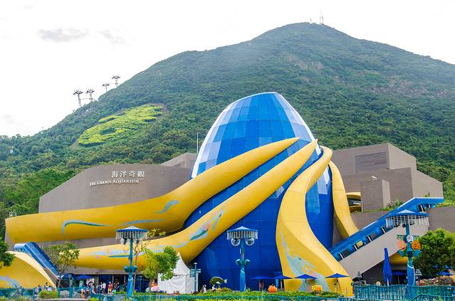 香港海洋公园,全球最受欢迎的主题公园。公园临山望海,拥有东南亚最大的海洋水族馆和主题游乐园。园区分为山下的海滨乐园以及山下的高峰乐园,而连接山上山下有两种交通设施,登山缆车、海洋列车。