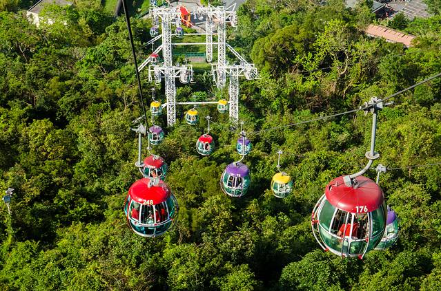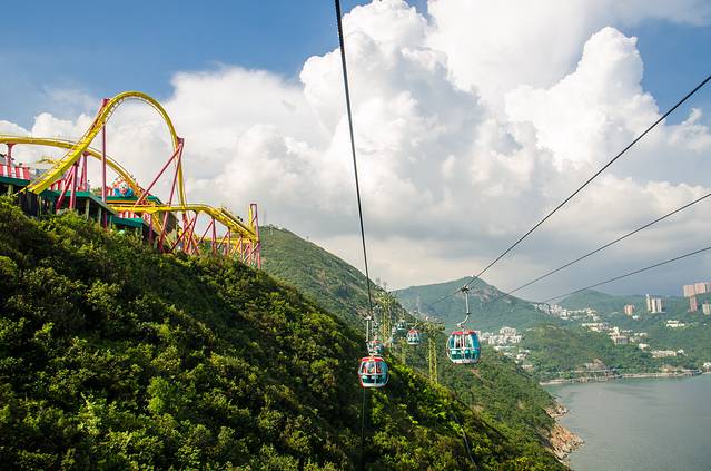 两种交通设施各有特色,最为推荐的便是空中缆车,游客只需乘坐1.4公里的缆车,便可来往于山上山下之间。 在缆车内,可观赏到深水湾、浅水湾海景,也可以看到动感快车极速飞驰。海洋公园的缆车世界闻名,跨“山”越“海”,一步一景。如果是在晚上乘坐,还能看到灯火辉煌的香港夜景。