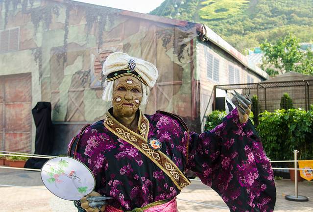 香港海洋公园,每年的万圣节都会有全新的主题,依据全新的主题修建全新的鬼屋,逼真的妆容,惊悚的环境,给你不一样的刺激。当天色渐暗时,鬼屋里的各路妖魔鬼怪全都走出鬼屋来到园区的每个地方,万圣节的气氛非常浓厚。