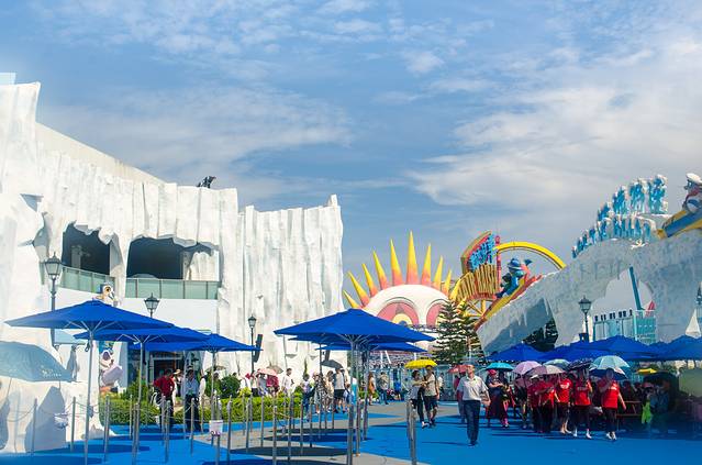 7. 在公园入口、动感天地和海洋天地分别设有游客中心,可以拿到园区指南和表演时间。