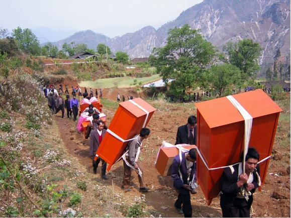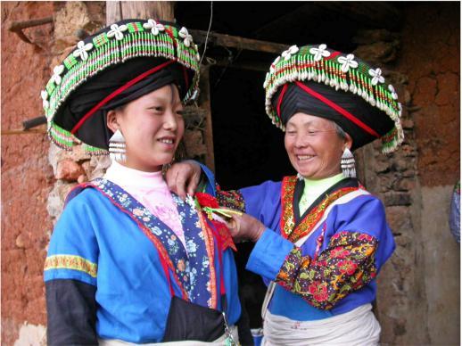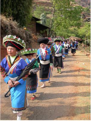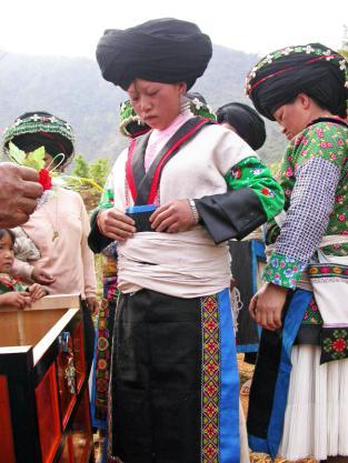 第二天一早,新娘由伴娘打扮一新,与同龄的姐妹告别,大家一边抹着眼泪,一边轻轻唱着“分别歌”: