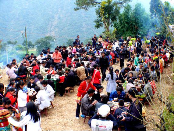 婚宴结束,客人们在葫芦笙和横笛的伴奏下,围着院坝中的篝火纷纷起舞,尽兴方休。
