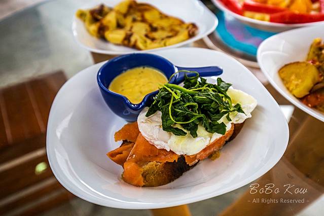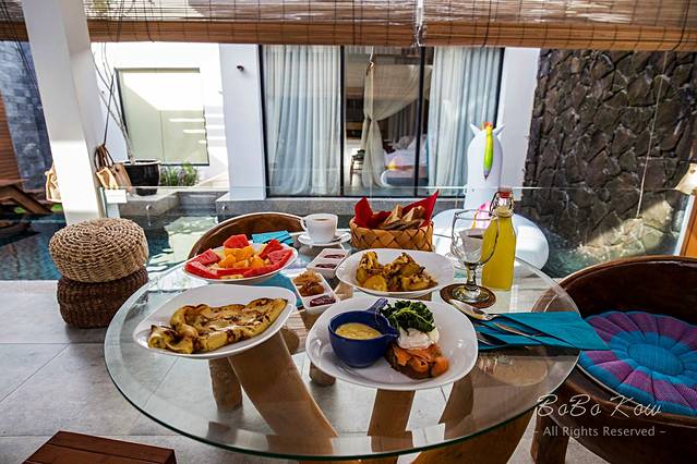 酒店有包含早餐,我们可以前一晚预定好再告诉他们几点要用餐,第二天早上食物就会送到别墅。