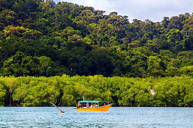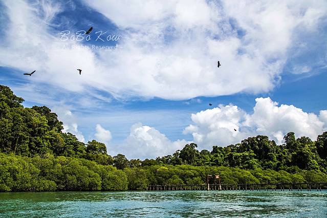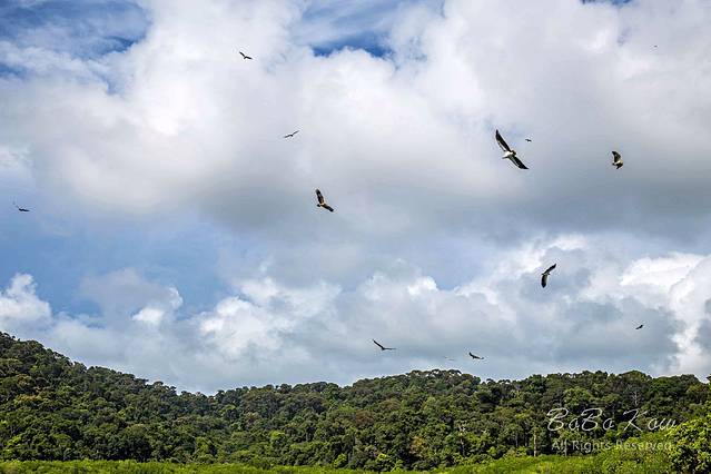 兰卡威 (Langkawi) 的名字源于 Lang = Helang 中文译为老鹰 , 顾名思义这里是名副其实的鹰之岛。在兰卡威你会看见数量繁多的老鹰在地质公园和红树林出没。红棕色的是这里最常见的老鹰英文名为Brahminy Kites,另一种则是体型较大白灰色的老鹰是White Bellied Sea Eagles 。