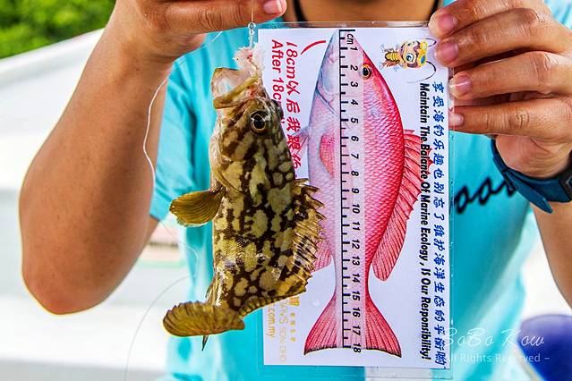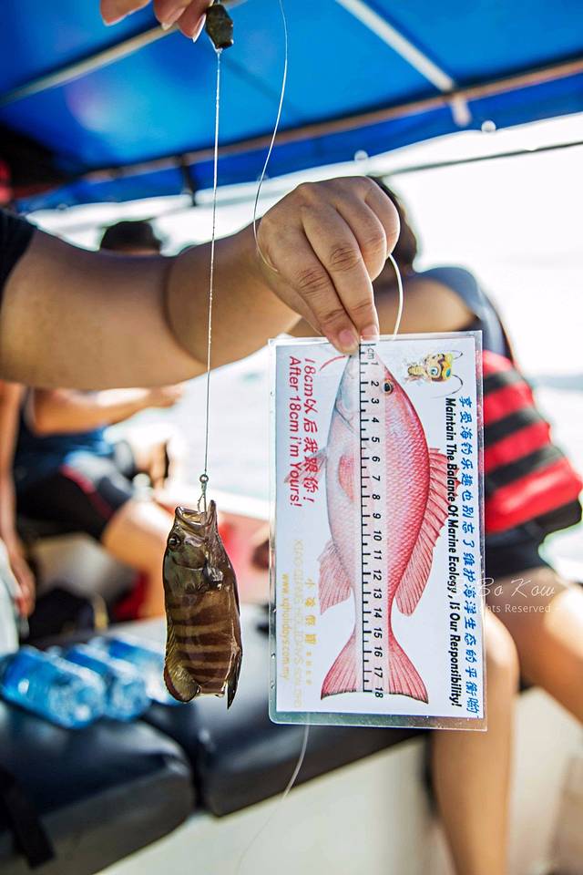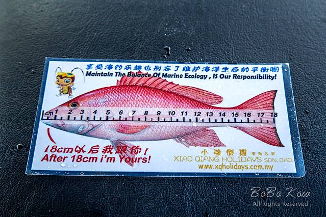 虽然在兰卡威,官方并没有限制渔获的尺寸, 但这家旅游公司为了保育这片海域的生态,特地准备了这张卡,让游客可以测量所钓到的鱼,把是太小的鱼放回海里继续生长。