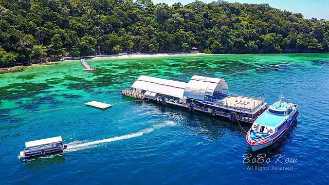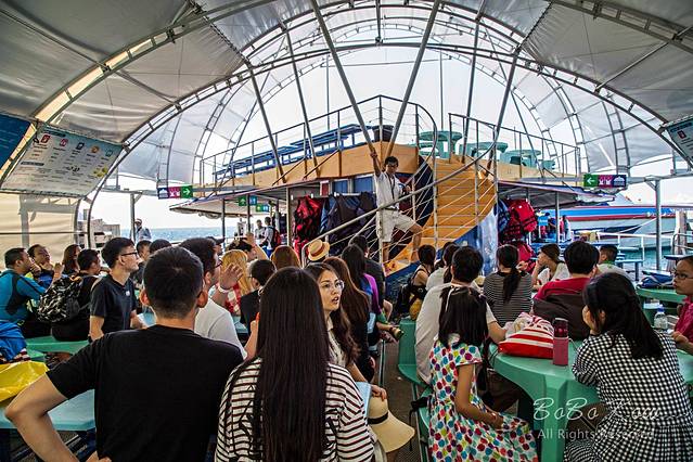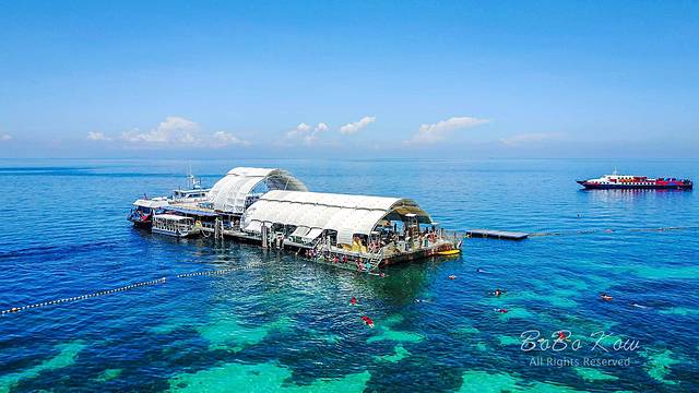 平台浮潜配套 除了可以在平台周围深达10米的海里浮潜外,平台里也有个海底小隧道,让不便浮潜的旅客也可以一窥神秘的海底世界。 享受完自助午餐后,旅客也可以乘搭接驳船到海边观看小鲨鱼,之后也可乘坐玻璃船底的船观看珊瑚。平台里也有自来水供旅客冲身,相比起沙滩配套,平台配套会相对的更舒服,活动也较丰富。