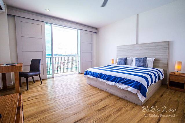 这趟来兰卡威4天3晚,我选了两家不同性质的酒店,前两晚入住的是位于瓜镇码头附近的游艇俱乐部酒店—— Langkawi Yacht Club Hotel 。酒店设计精致,一排色彩斑斓的小楼房坐落在海湾边上,面对着来自世界各地停泊在码头的游艇。
