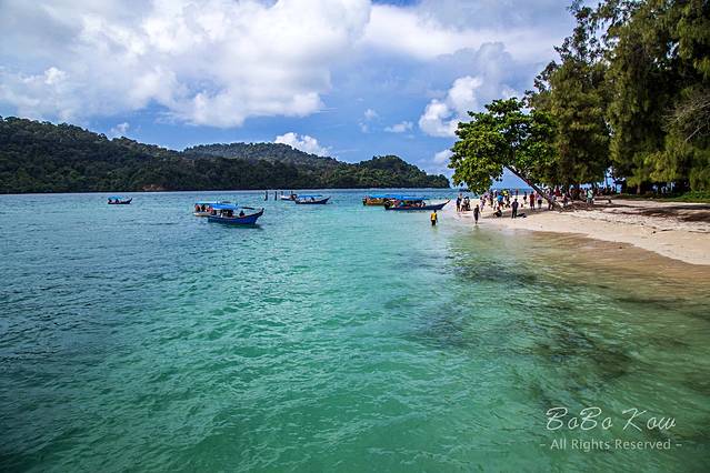 湿米岛是大部分跳岛配套必停的一个景点, 这里有适合游泳的沙滩,还可以进行水上活动。岛上还能看见银叶猴在丛林里自由活动。