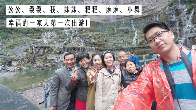摆渡车先到天界山门口,再到八里沟。天界山在山脊,八里沟在山谷。天界山有缆车,下缆车后还要徒步半个小时到山顶,对麻麻这个年纪的人来说是不小的挑战,所以我们选择只游玩八里沟。