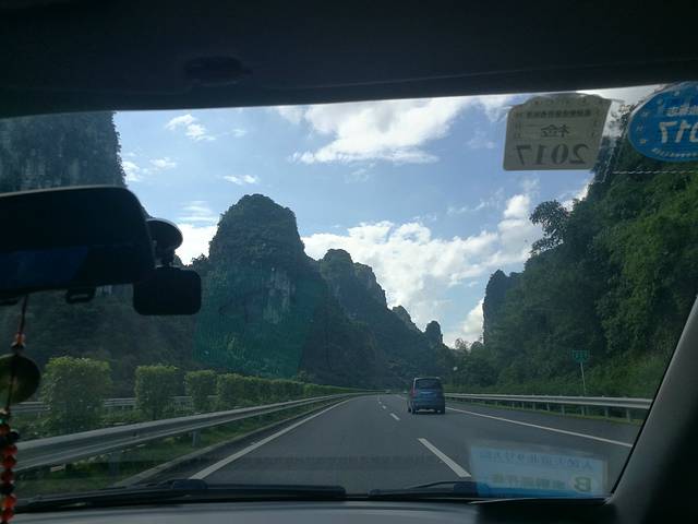 吃完早餐我们又开始赶路了,去的是黄姚古镇,从南宁去路程挺遥远的,得5个小时,我们这次的路线走一段都几乎是五个小时以上的路程,大概然然想带我游车河顺带练练我的车技吧。一路上的风景很美,都是山,却又是有些婀娜多姿,有时又有些壮美,哈哈,大概桂林的山也是这样了吧。