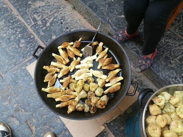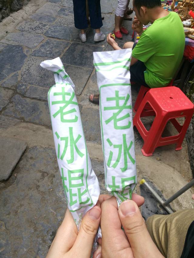 早上我们去找吃的,小道上有一些婆婆在卖一些竹笋包着糯米的东西,我们也买了几个,还算可以吧,我比较爱吃笋,味道还是可以接受的。我还吃到了我心心念念的豆腐花,很不错哦。路上还遇到好几个穿着解放时期的民工装的女孩子在卖老冰棍,4块一根,就是普通的红豆冰棍,大家来这里贪图的都是那一份情怀,吃的自然也是那一份情怀。