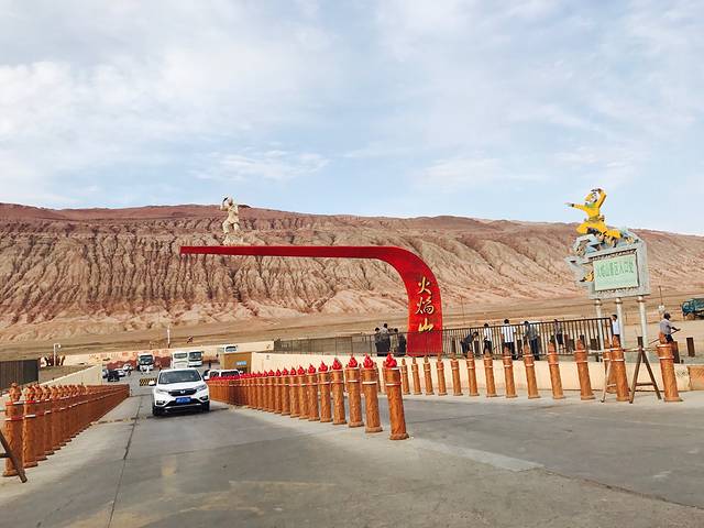 火焰山古称赤石山,位于吐鲁番盆地的北缘,古丝绸之路北道。呈东西走向。火焰山,维吾尔语称“克孜勒塔格”,意为“红山”,唐人以其炎热曾名为“火山”。 山长100多公里,最宽处达10公里,海拔500米左右,主峰海拔831.7米。火焰山童山秃岭,寸草不生,飞鸟匿踪。每当盛夏,红日当空,赤褐色的山体在烈日照射下,砂岩灼灼闪光,炽热的气流翻滚上升,就像烈焰熊熊,火舌撩天,故又名火焰山。