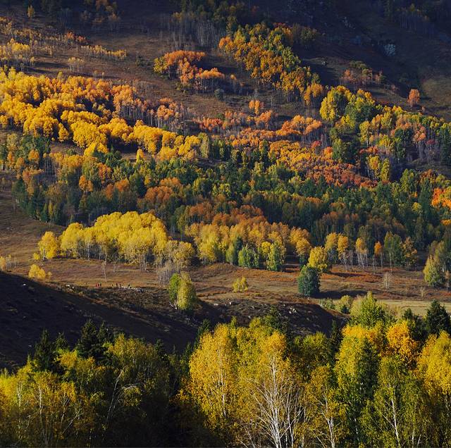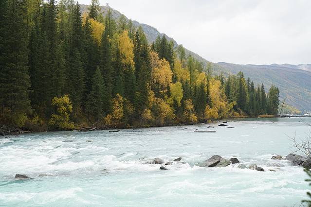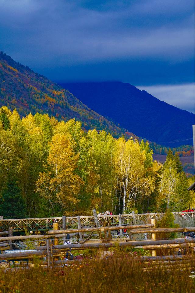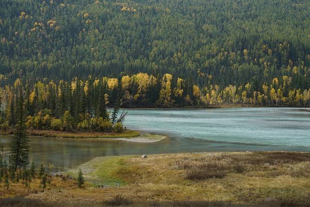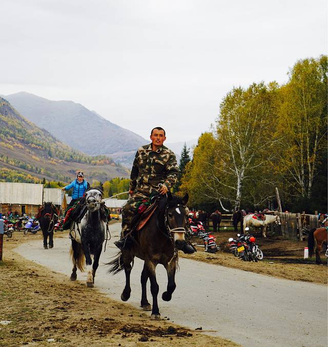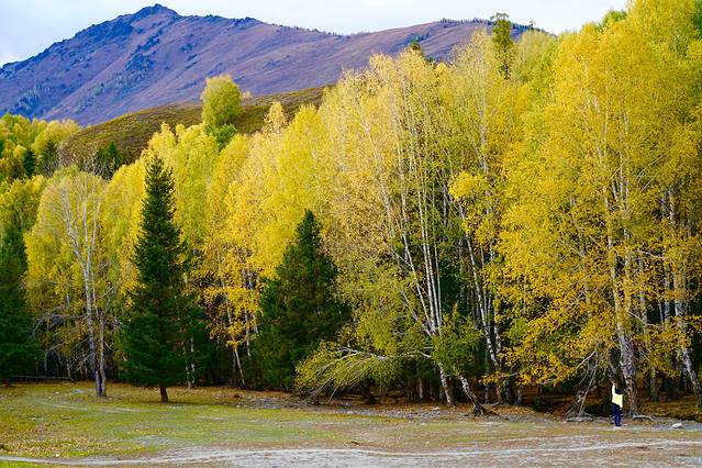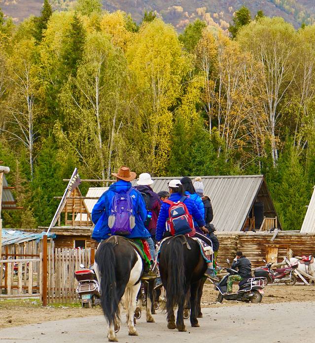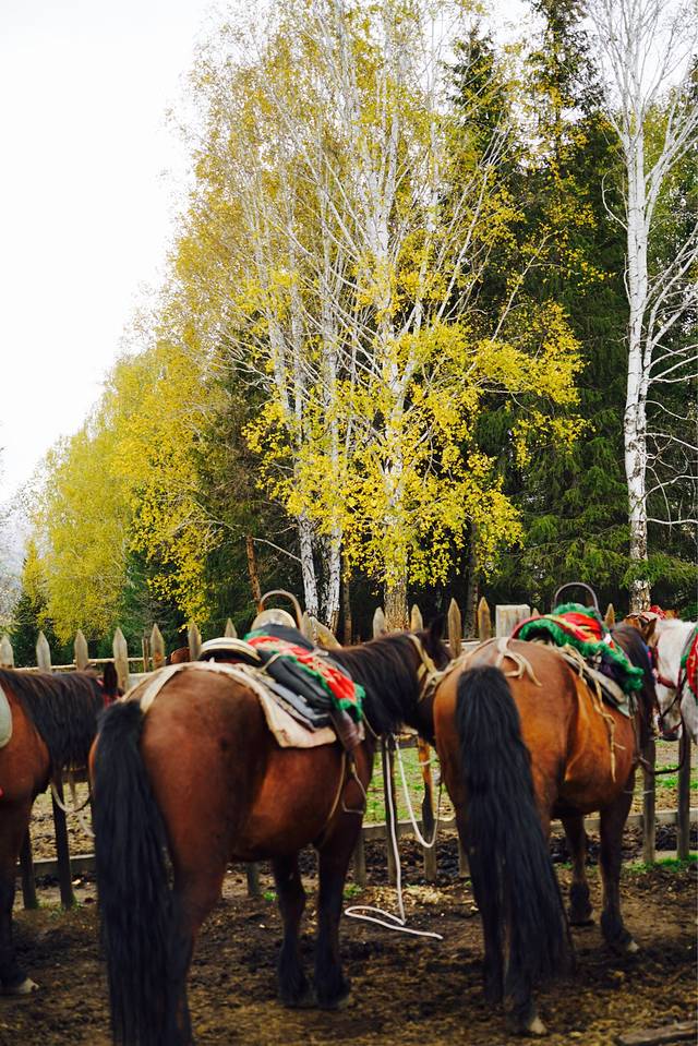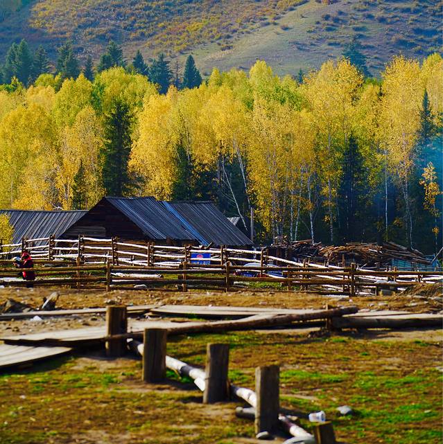 禾木村每年都是9月底,叶子是最漂亮的,但是今年可能时间推迟了,我们来到的时候,叶子黄了但是没有红。