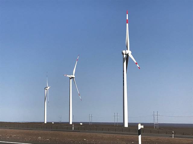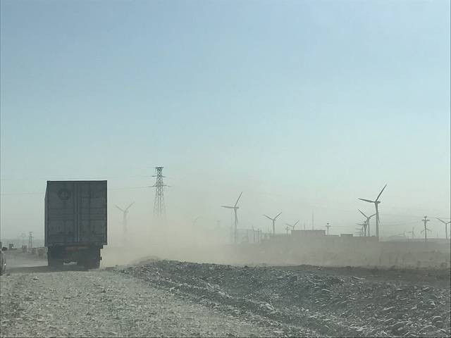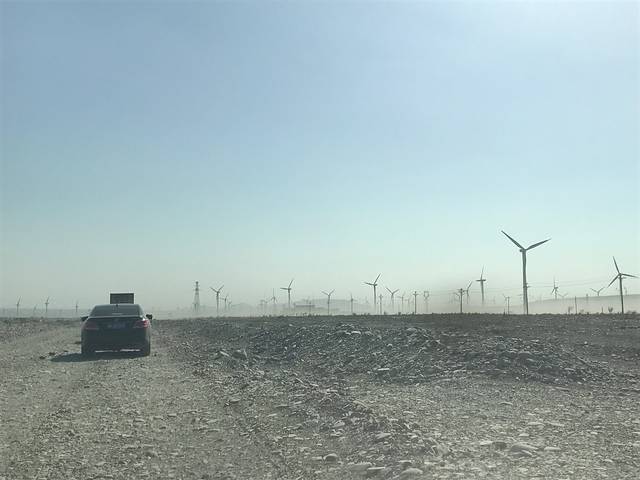 我国西北地区风力资源非常丰富,我们沿途都可以见到大片大片的风力发电场,尤其是离开乌鲁木齐前往内蒙古的路上,连绵好几公里。