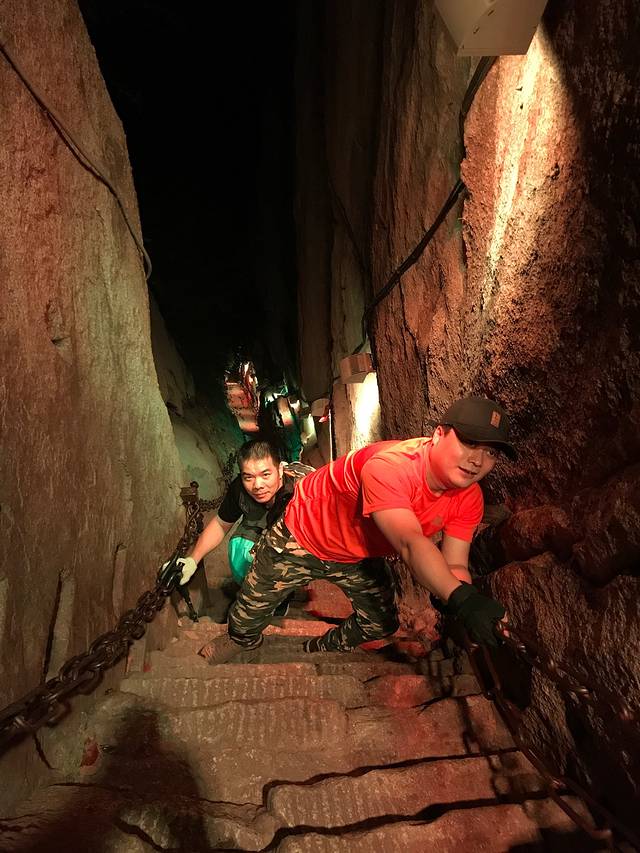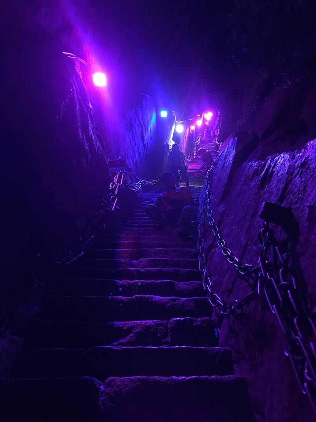可能是太兴奋了,大家决定连夜登山,其实这不是一个好主意,第一,我们下山时用索道,晚上上山时山的美丽、山的峻峭感受不到;第二,旅程才刚刚开始,爬这么激烈的山,脚痛了好几天,这个在后面的行程里面负面影响慢慢体现出来,应该是在返程的时候爬比较合理。