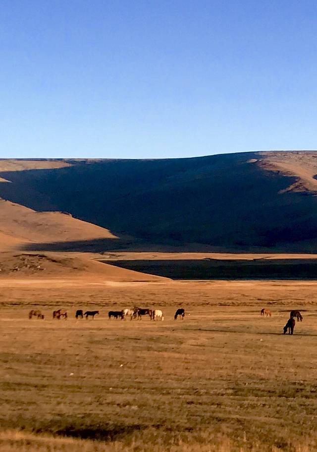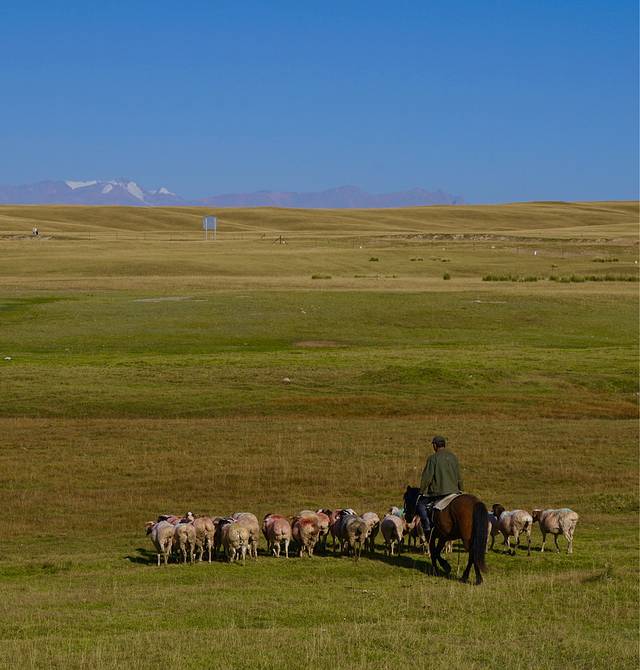 现代化的公路飞驰过往的汽车,休闲的牧马人,真是原始与现代的超级和谐。