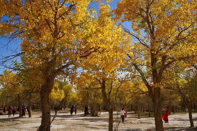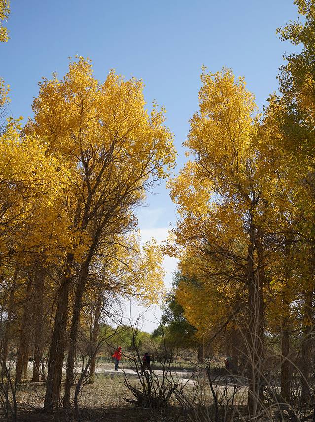 当地 每年在十一期间额济纳会有胡杨林节,今年的是在九月,到十月为胡杨林节也就是胡杨树最美的时间。早了胡杨叶子没有黄,晚了胡杨叶子就会掉光叶子。