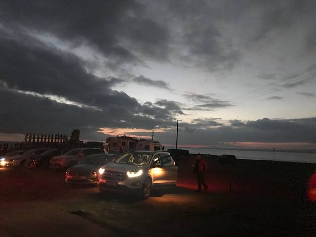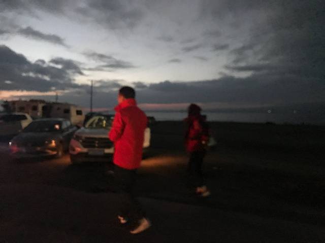 查阅资料,从当地人的口里面得知(查资料也是),现在的日出时间是早晨6点半,我们一直等到七点,还不见动静,以为太阳已经升上去了,被上方的黑云挡住,就灰溜溜的驱车走了。