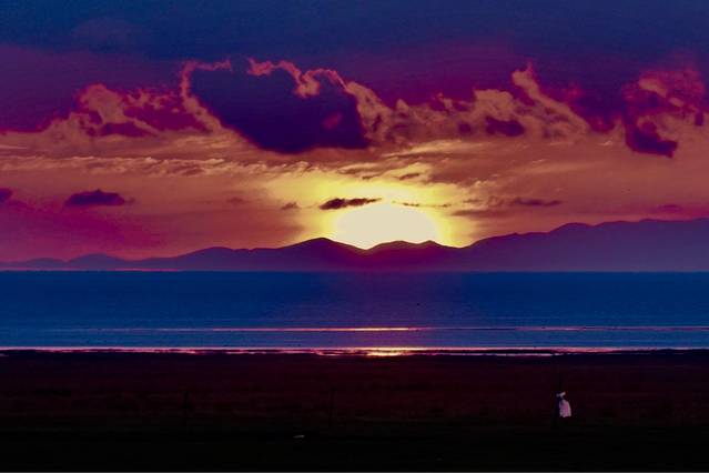 青海湖,藏语名为“措温布”(意为“青色的海”)。位于青藏高原东北部、青海省境内,中国最大的内陆湖、咸水湖。由祁连山脉的大通山、日月山与青海南山之间的断层陷落形成,青海湖长105公里,宽63公里,湖面海拔3196米