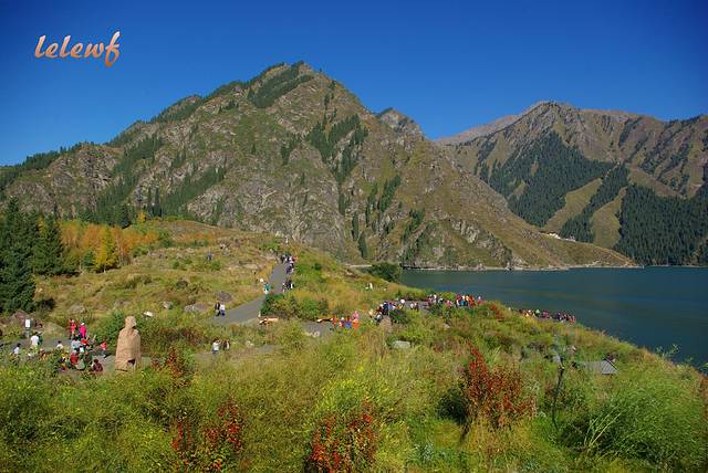 “我们新疆好地方啊,天山南北好牧场,戈壁沙滩变良田,积雪融化灌农庄。”天山山脉成就了新疆,天山天池如同一颗明珠,镶嵌在天山山脉东段,背靠雄壮的博格达峰,群山环抱下的高山湖泊,被誉为西王母瑶池!拖着行李箱来到游客中心,不料寄存的柜子塞不进,这下可就尴尬了,与现场工作人员恳切交谈后,被指引到里面的工作人员大办公室,再次说明情况后被特许寄存,很感激解决了大问题,有了好天气,又有了好心情!天池边,静下心来慢慢欣赏固然不错,可是旁边的马牙山的吸引力更大,喜欢爬山的人儿怎能错过,毕竟时间是有限的,一路的木栈道非常好,景色也是相当壮观,可遥望博格达峰,也可俯瞰天山天池,根本停不下来!花了五个半小时,走完了整圈木栈道,其中包括重合的一段,从山脚到制高点,从云杉林到高山草甸,高度在变化,景色也在变化,软软的木栈道具有的弹性缓冲,对脚和膝盖的减震效果非常好,走起来很轻松,加上一路美景相伴,真还不觉得累,反而是越走越轻松,只可惜时间有限,要不然再来五小时,想必问题也不大!