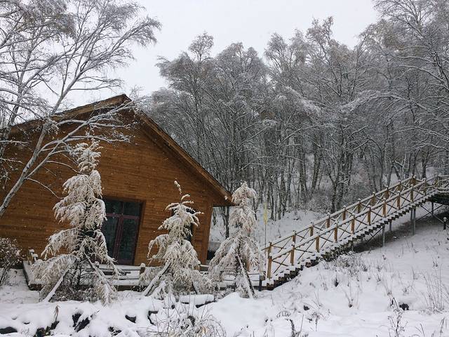 早上7点出发,经过三个半小时的雨中行驶,达到了崇礼区。到达市区,只有小雨,入住宾馆后,直接驶往翠云山景区。当我们进入山区,发现落下的小雪花了。当时的海拔在1000米左右。可是当海拔上升到1200的时候,我们这时也到达了景区的大门,展现在我们面前确实皑皑的大雪!