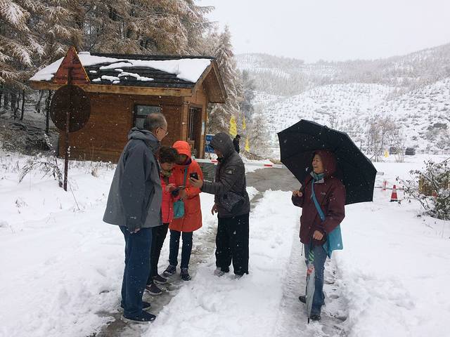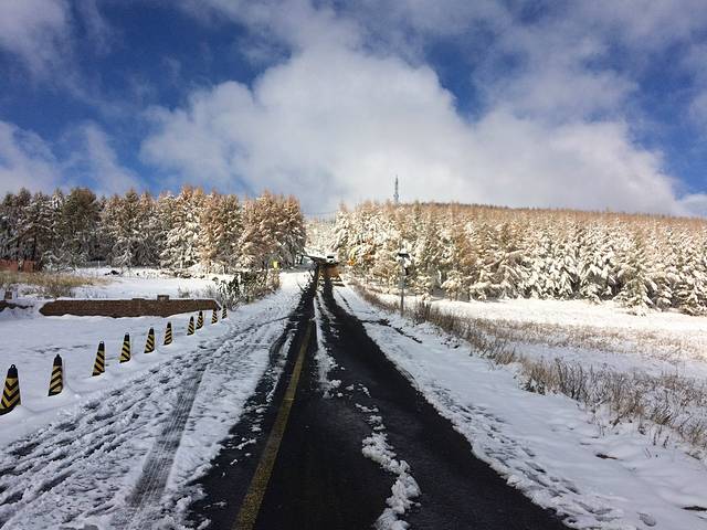 2017年10月10日,我们一行六人自驾从北京出发到草原天路和崇礼翠云山。经过几天的功课准备和仔细推敲,我们为了躲避“双节”期间的喧闹和拥挤。决定10号启程前往草原天路,开始我们的行程。万万没有想到,北京从十月八号开始就阴雨绵绵,到了十号依然没有停止的迹象。经过和崇礼那边联系,得到了确切的消息,那边已经开始下雪了!下雪?下雪。。。。。。对于我们而言,是个非常忐忑不安的消息。去吧,一路的雨,安全问题,即使到了崇礼又是雪?不去吧,多少年来,对于我们这些城里人来说,难得看见一场“痛痛快快”的雪?真是一个“两难”的选择!可是旅行就是一种体验,如果生活都是一种“色彩”,可能生活就如同嚼蜡了!走,来场说走就走的旅游,换种心情,换种方式,换种对大自然的审视态度,可能更有一种放松的体验!没有想到去到以后的感觉,让我们大呼“过瘾”!特别是我,因为我九月底已经去过一次草原天路,已经走过这样的一套行走路线。不到一个月的时间里重新走,我特别有感触。路还是那条路,山还是那座山,可是景色不同了,满眼的景色让我感觉,都是那样的“陌生和亲切”。我自己扪心自问,这是为什么?其实道理非常简单——那就是陪伴的人不同了,欣赏的景色不同了,自然我的心情也不同了。。。。。。