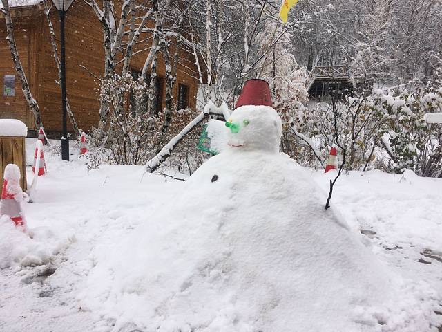 山门堆起的雪人,仿佛只有它来迎接我们的到了。