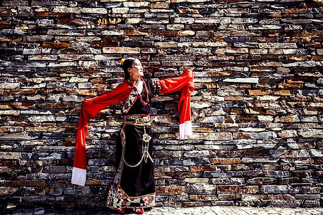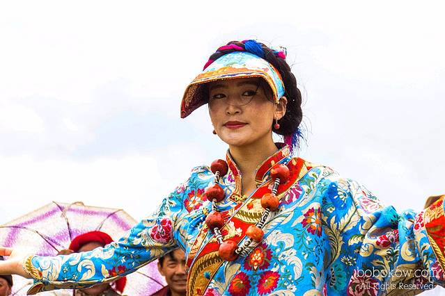 康巴女孩的服饰雍容华贵,色彩艳丽图案精致的衣饰,世代相传的头饰、胸饰、背饰、腰饰和其他饰物,如用九眼石、玛瑙、翡翠、红珊瑚制做的项链、头饰,用绿松石、蜜腊石和纯银制做的各类饰物等,这些服饰价值成为其家庭财富的标志。