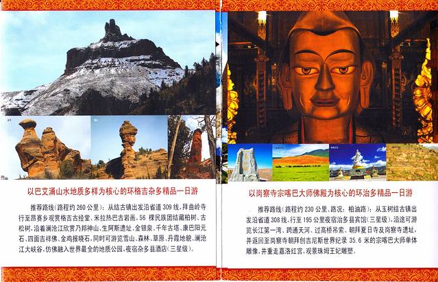 推荐路线(路程约260公里):从结古镇出发沿省道309线,拜曲岭寺行至昂赛乡观赏格吉古经堂、米拉热巴古岩画,56棵民族团结藏柏树、古松树,沿着澜沧江欣赏乃邦神山、生阿斯遗址、金银泉、千年古塔、康巴阳元石、四面吉祥佛、金鸡报晓石,同时可游览雪山、森林、草原、丹霞地貌、澜沧江大峡谷,仿佛融入世界最全的地质公园,夜宿杂多县酒店(三星级)