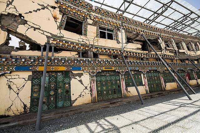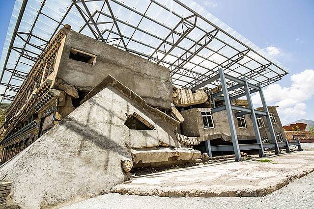 地震遗址纪念馆,这建筑是当年在地震中坍塌的民居。