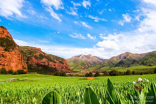 从勒巴沟开往文成公主庙的路上景色非常漂亮
