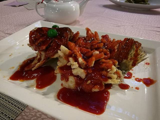 既然已经来了,那么必须要去尝尝名声在外的松鹤楼了,虽然只是分店……拼桌还是南方的一大特色,和健谈有趣的一家五口拼了一个大桌,果然都点了松鼠鳜鱼,酸甜口味,很像鲁菜糖醋鲤鱼,只是咸味少。