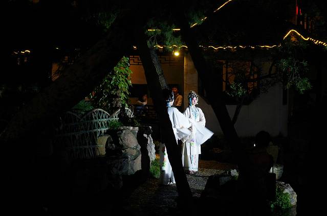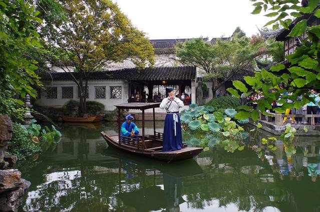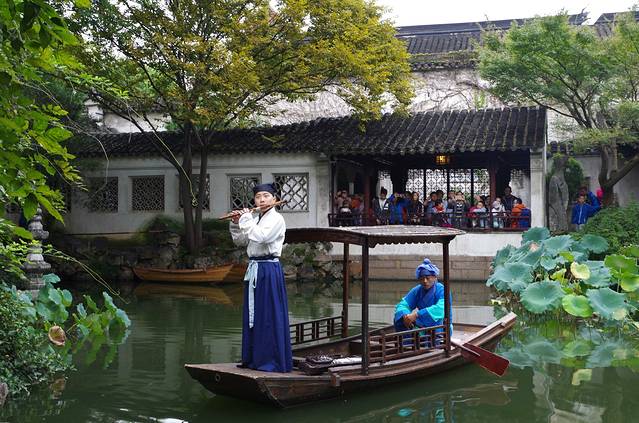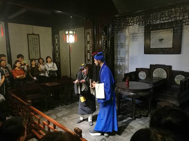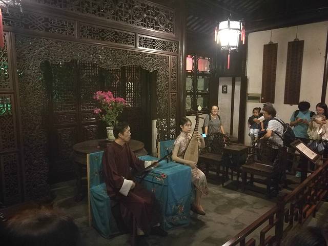 每隔几分钟会有园内的导游来解说、带领,不是第一批去的要耐心等候,共有八种商业表演,基本涵盖了江苏当地的特色曲艺,个人最喜欢听评弹和昆曲,嘿嘿……
