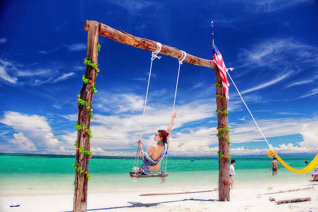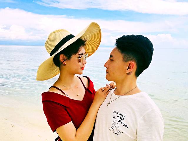 真的是好美,天很蓝,水很清,有沙滩🏖白云☁还有偶的帅先生🙈🙈